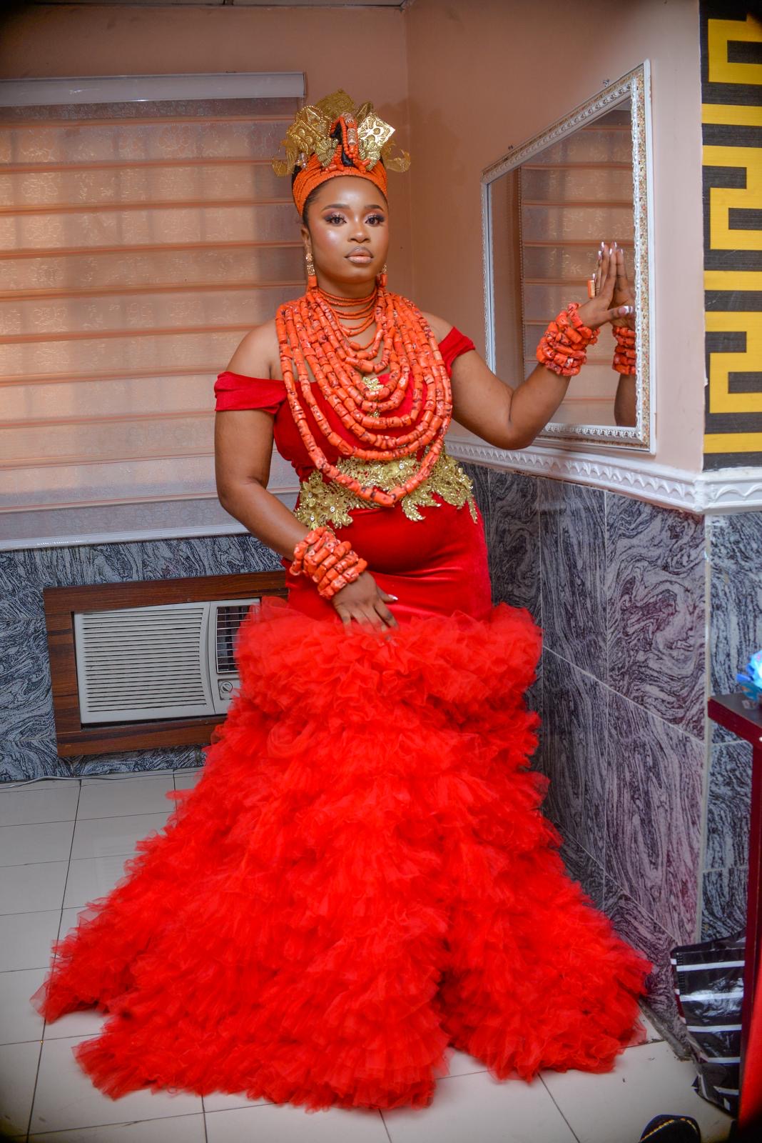 Owa, a distinguished Nigerian bridal attire, embodies generations of cultural heritage through its meticulous craftsmanship. This traditional ensemble features elaborate embroidery, luxurious textiles, and symbolic motifs that represent prosperity and marital harmony. The garment's structured silhouette and vibrant color palette create a regal presence befitting the significance of Nigerian wedding ceremonies.